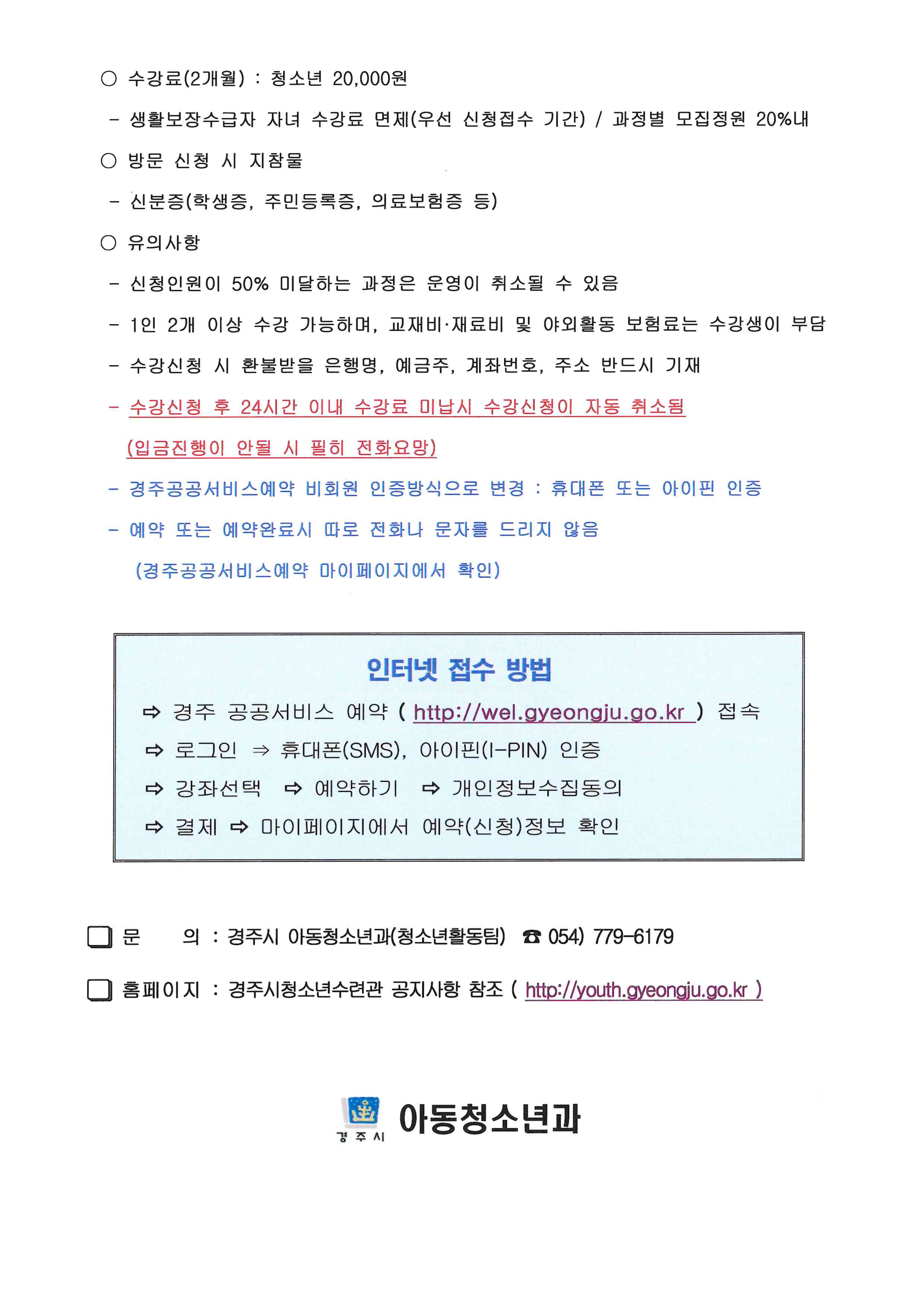 매주 토 13:30~15:30 장소 : 외동읍주민자치센터 2강의실