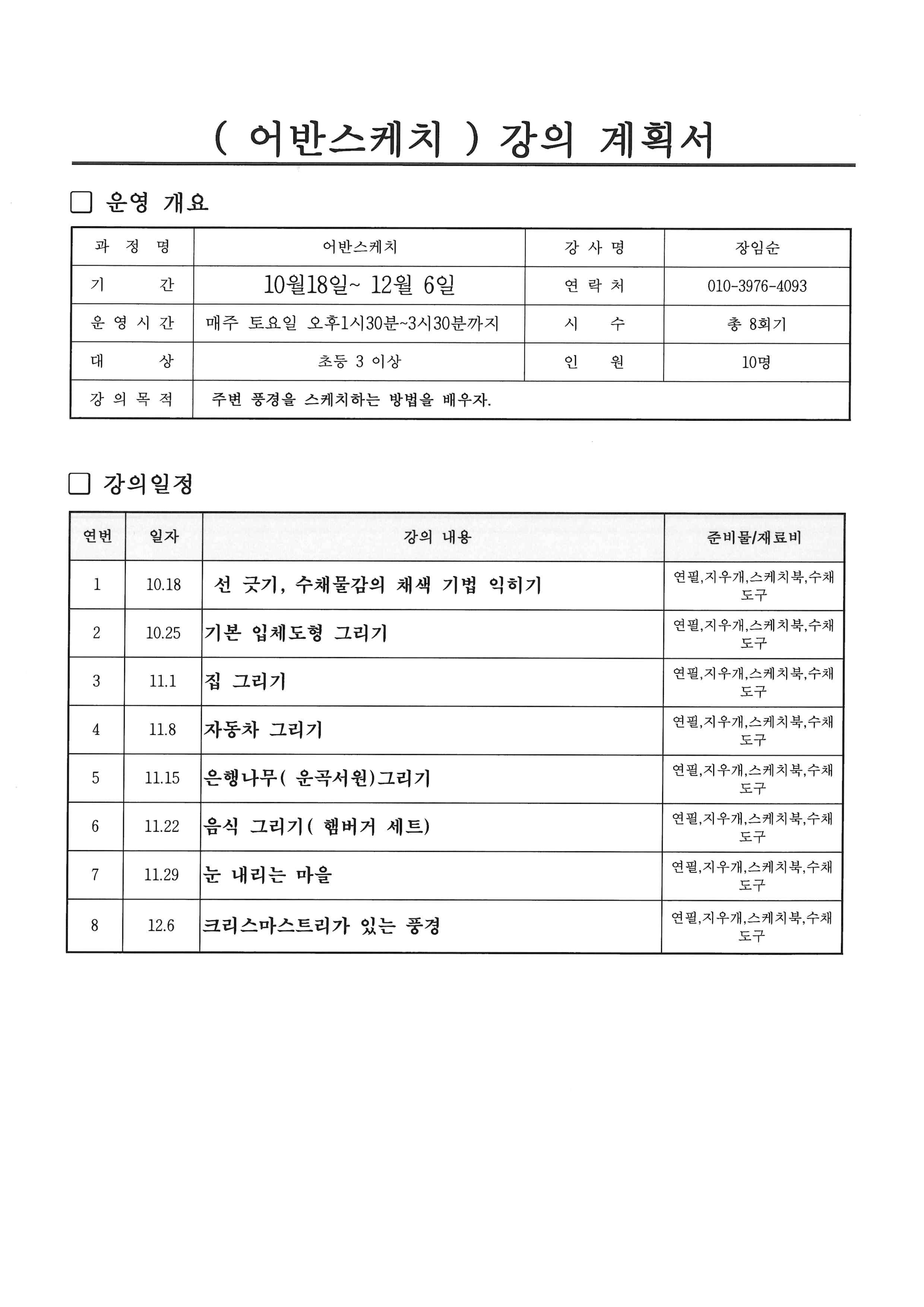 ※ 자세한 준비물 및 수업관련 문의는 강사선생님께 문의바랍니다.