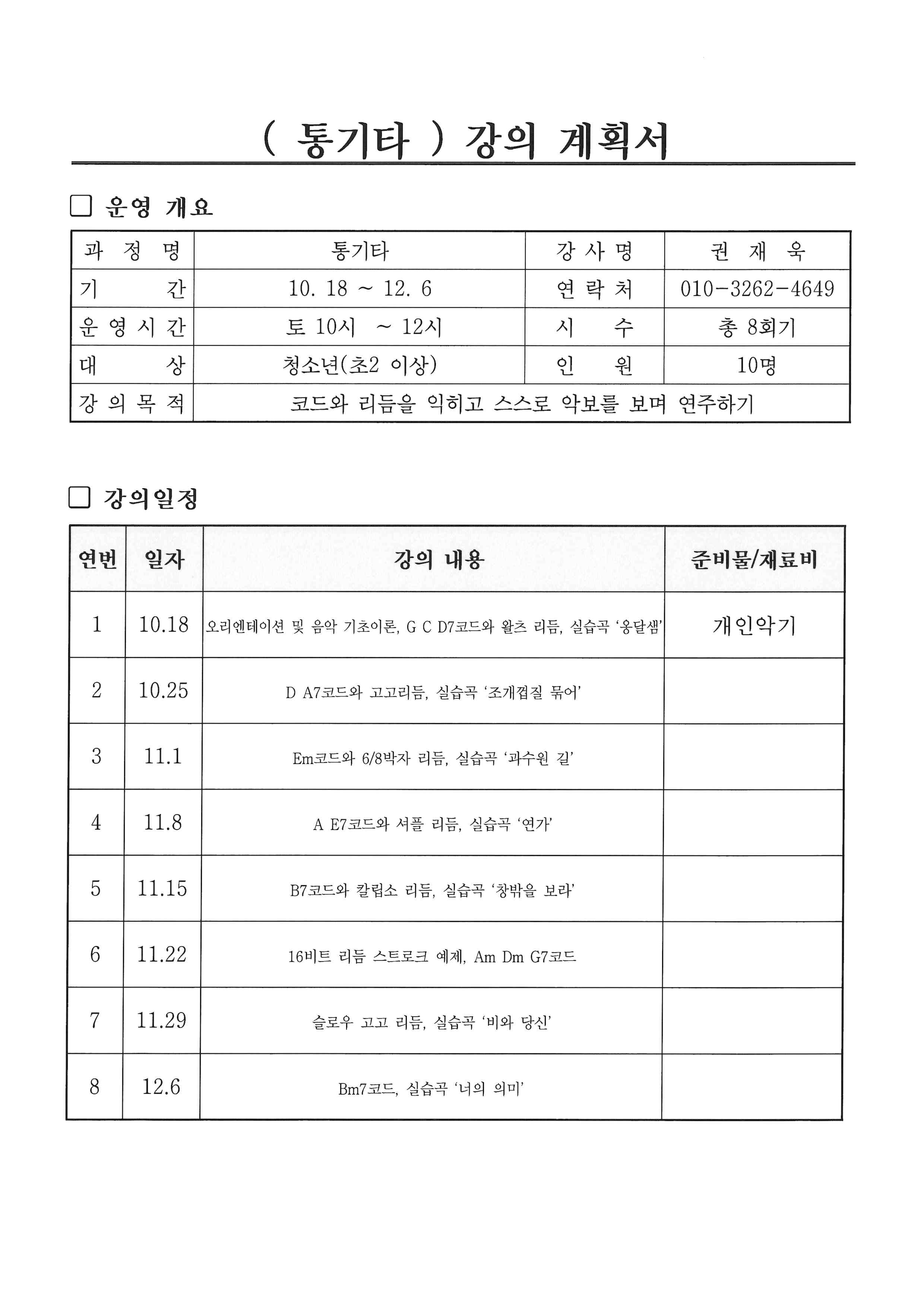 ※ 자세한 준비물 및 수업관련 문의는 강사선생님께 문의바랍니다.