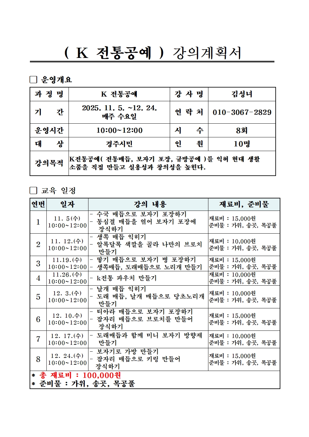 ★ 상기 일정은 생활문화센터 및 강사의 사정에 의해 변경될 수 도 있습니다.
