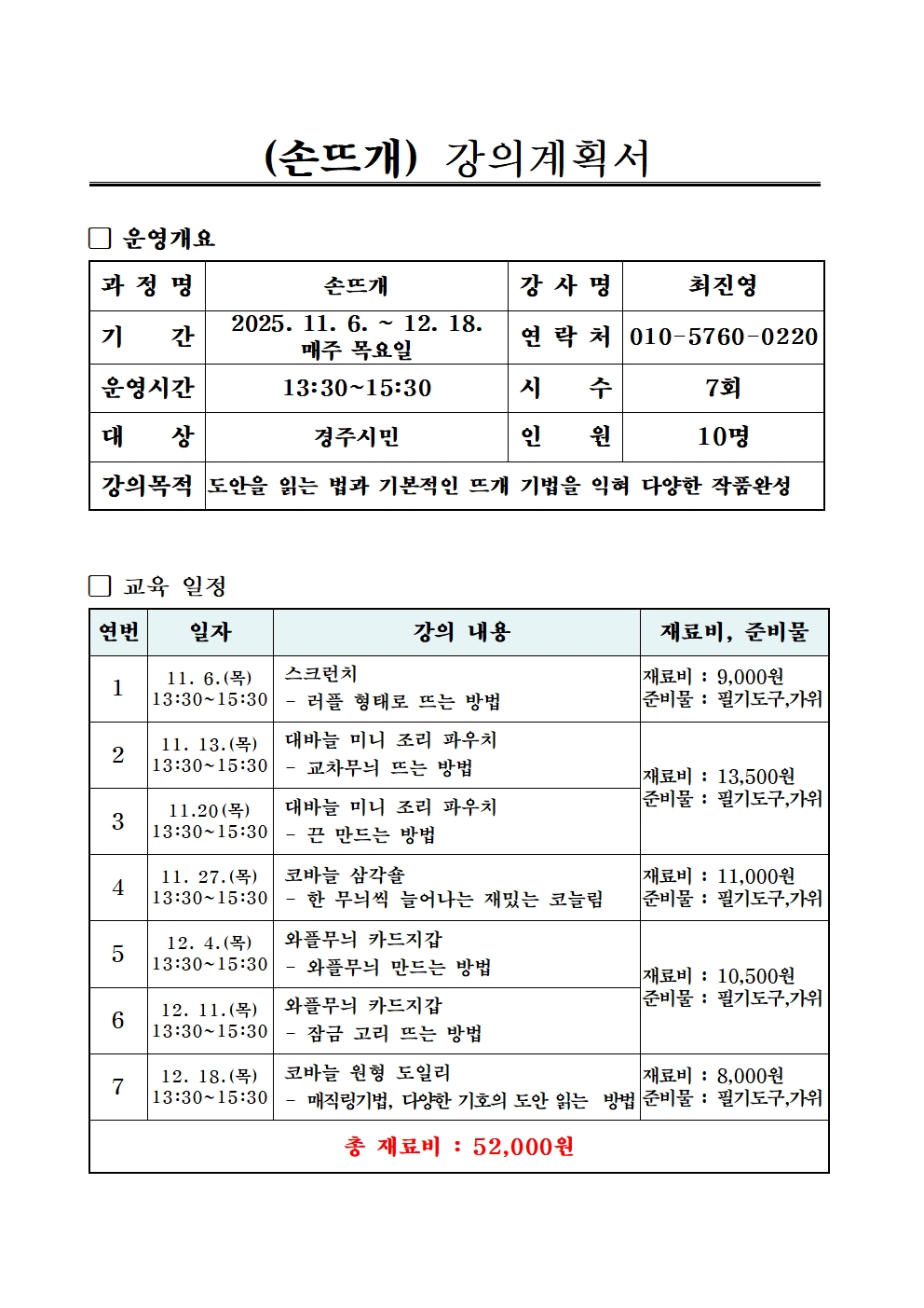 ★ 상기 일정은 생활문화센터 및 강사의 사정에 의해 변경될 수 도 있습니다.