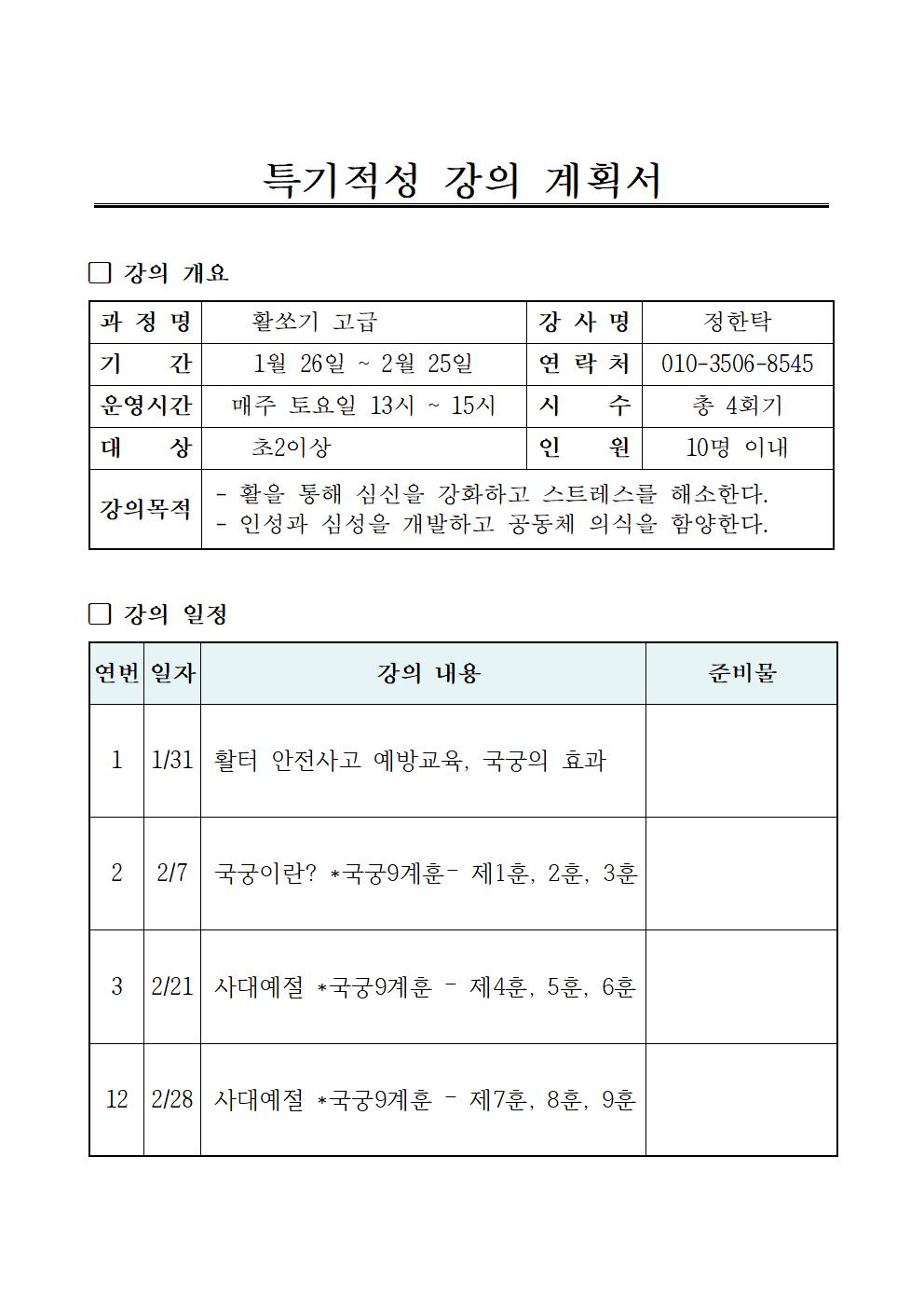 - 겨울학기 특기적성 교육 총 4회 운영