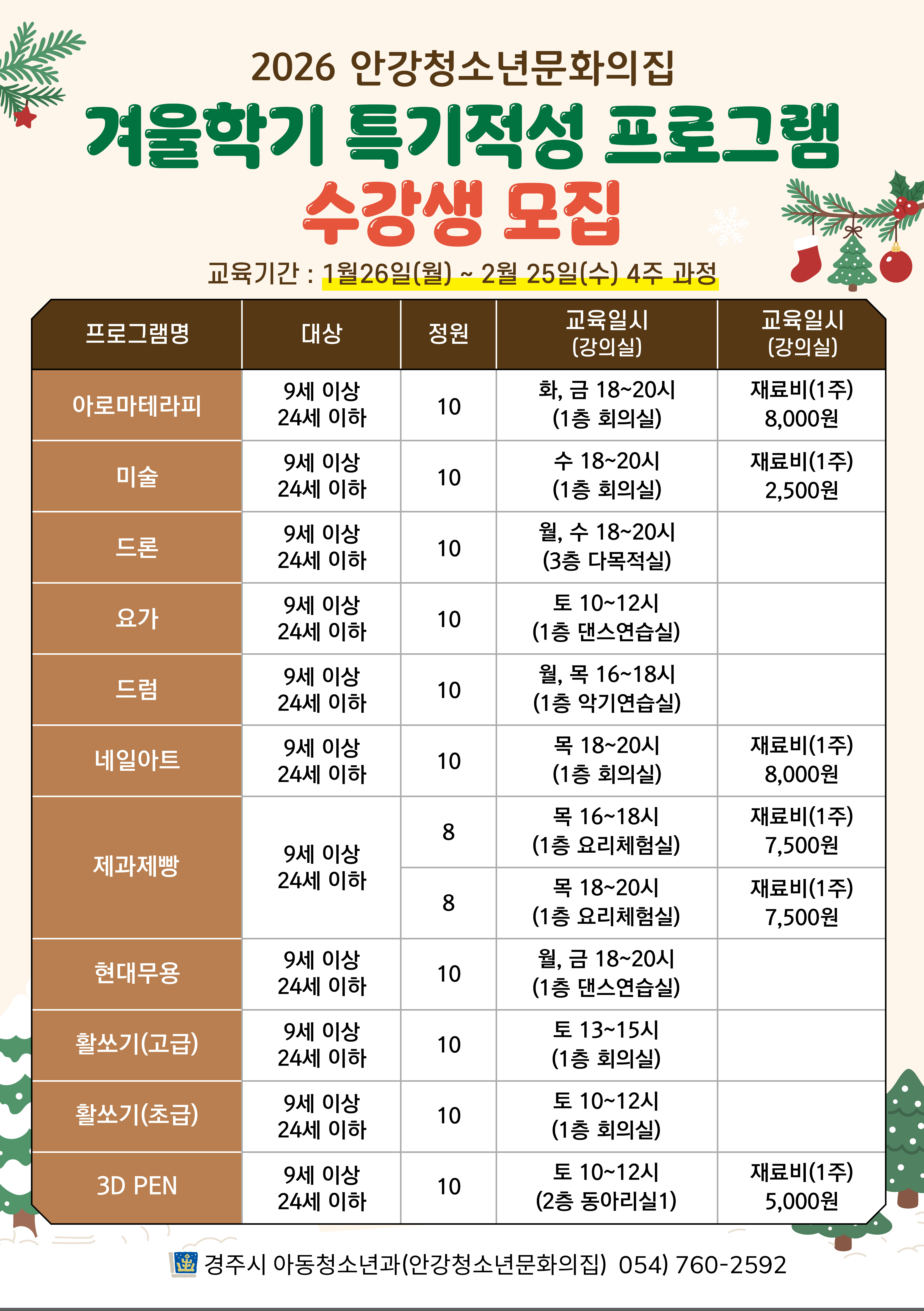 - 대 상 : 북경주 청소년 우선대상(초등 2학년이상) 10명
