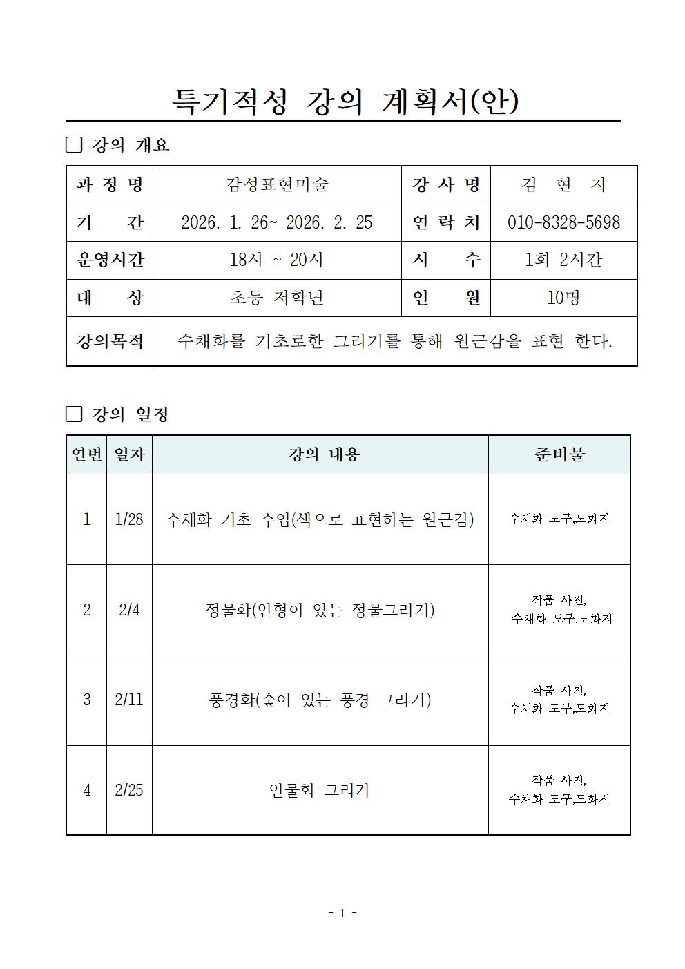 - 일 정 : 매주 수요일 18:00~20:00 (4회기)