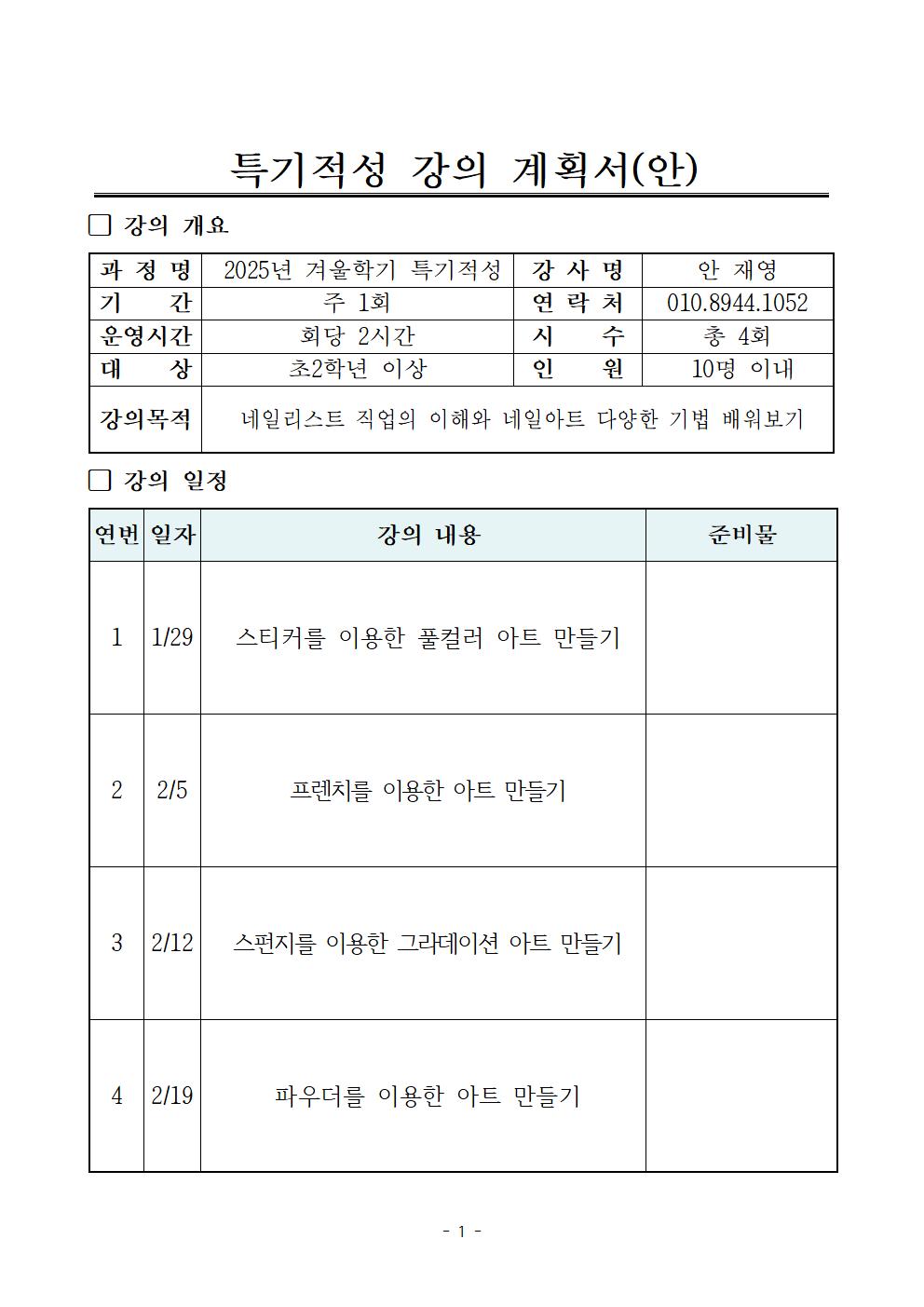 - 겨울학기 특기적성 교육 총 4회 운영
