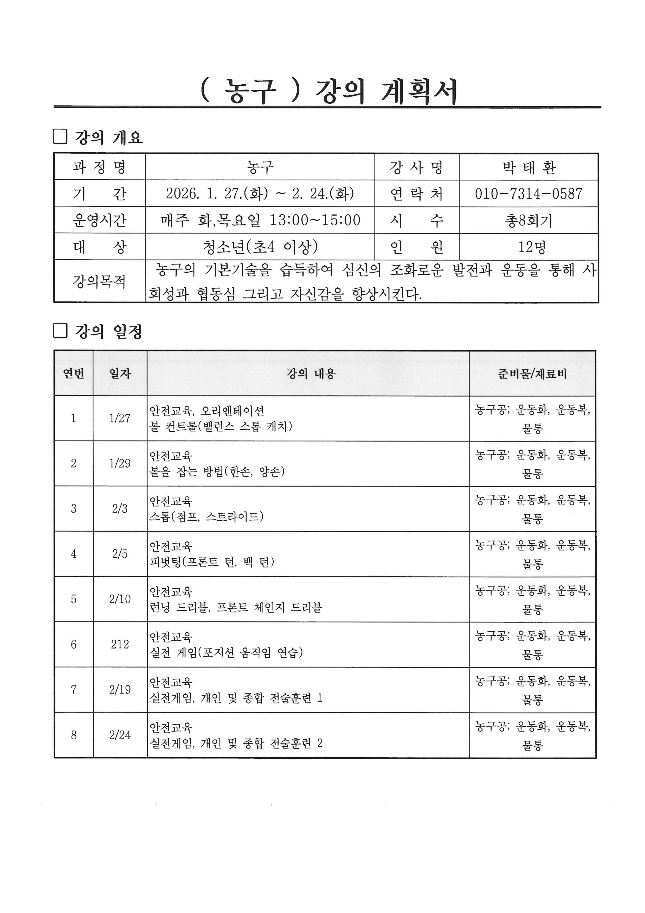 ※ 자세한 준비물 및 수업관련 문의는 강사선생님께 문의바랍니다.
