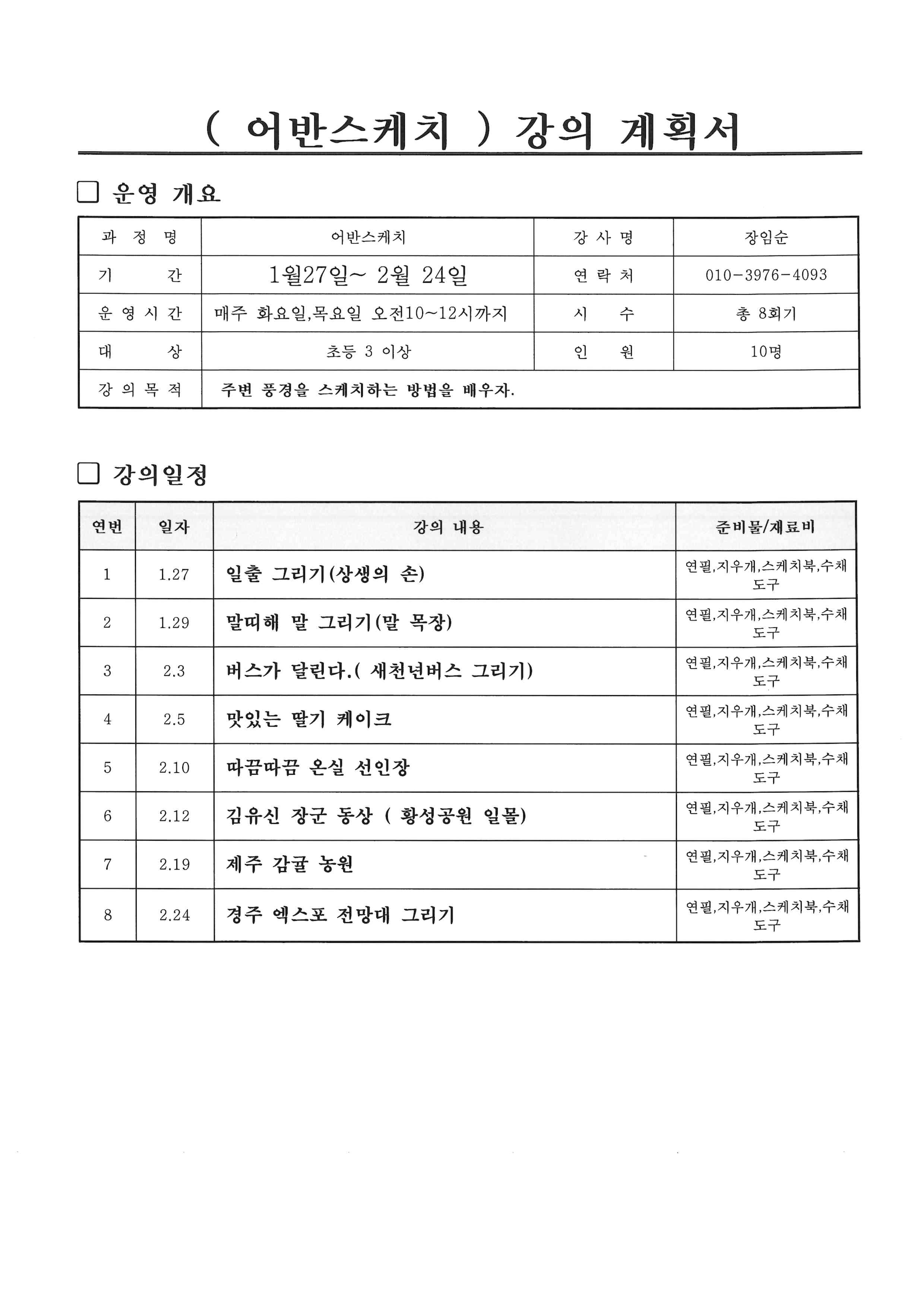 ※ 자세한 준비물 및 수업관련 문의는 강사선생님께 문의바랍니다.