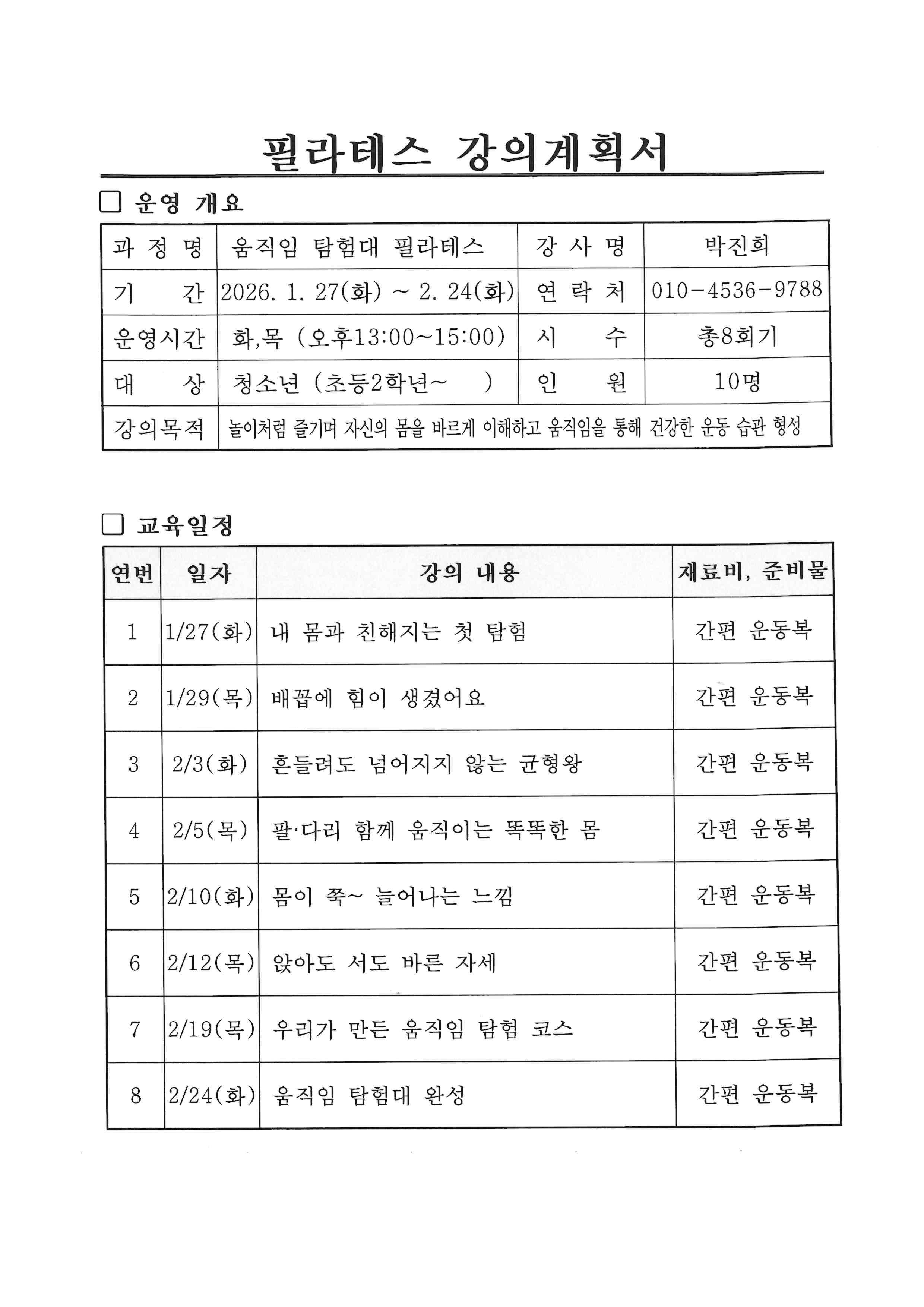 • 움직임 탐험대  필라테스