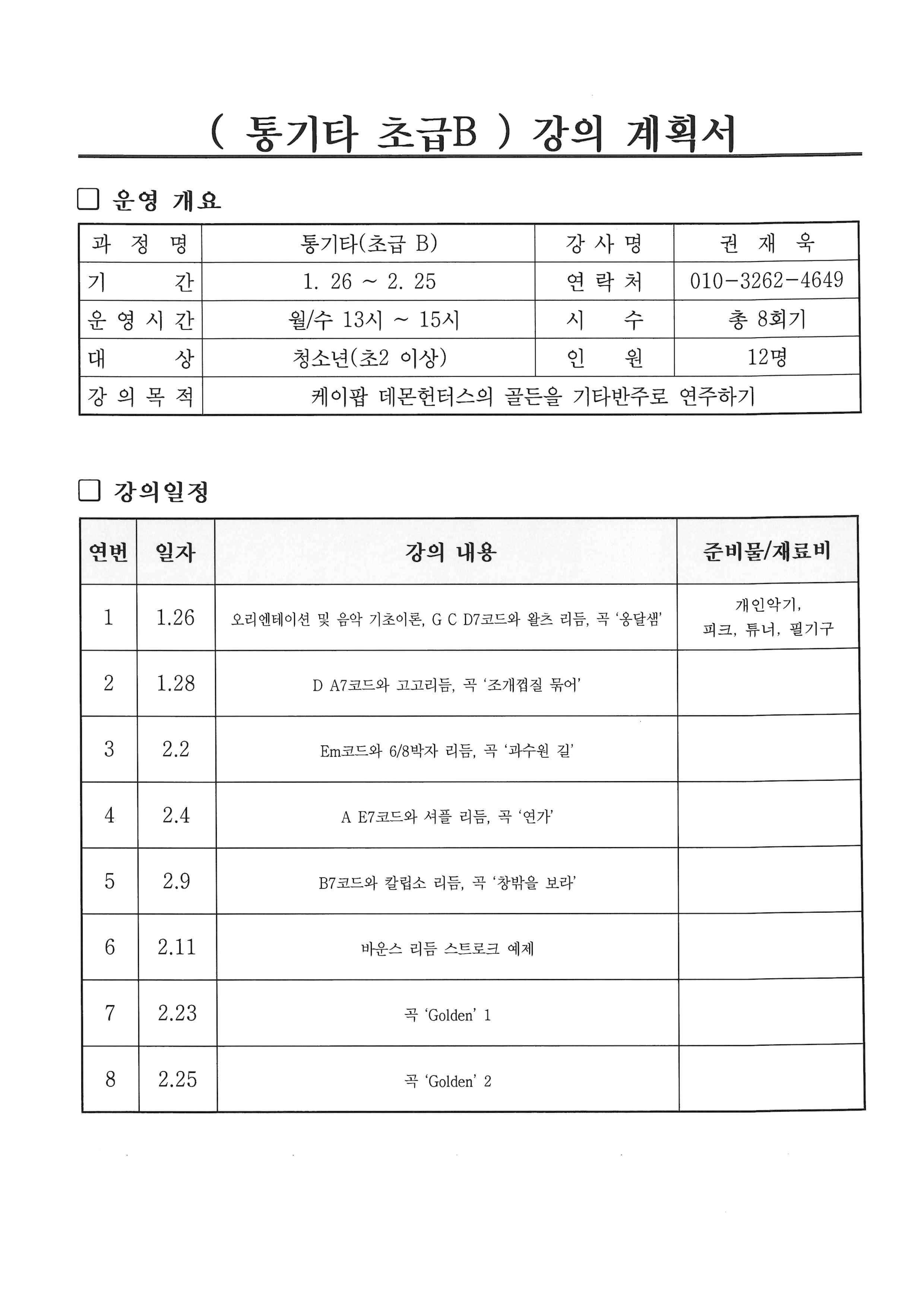 ※ 자세한 준비물 및 수업관련 문의는 강사선생님께 문의바랍니다.