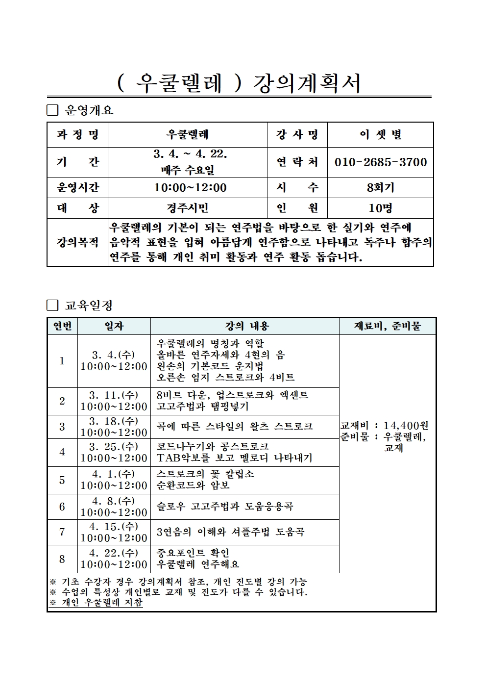 ★ 상기 일정은 생활문화센터 및 강사의 사정에 의해 변경될 수 도 있습니다.