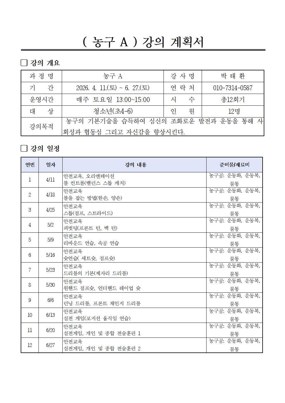 ※ 자세한 준비물 및 수업관련 문의는 강사선생님께 문의바랍니다.
