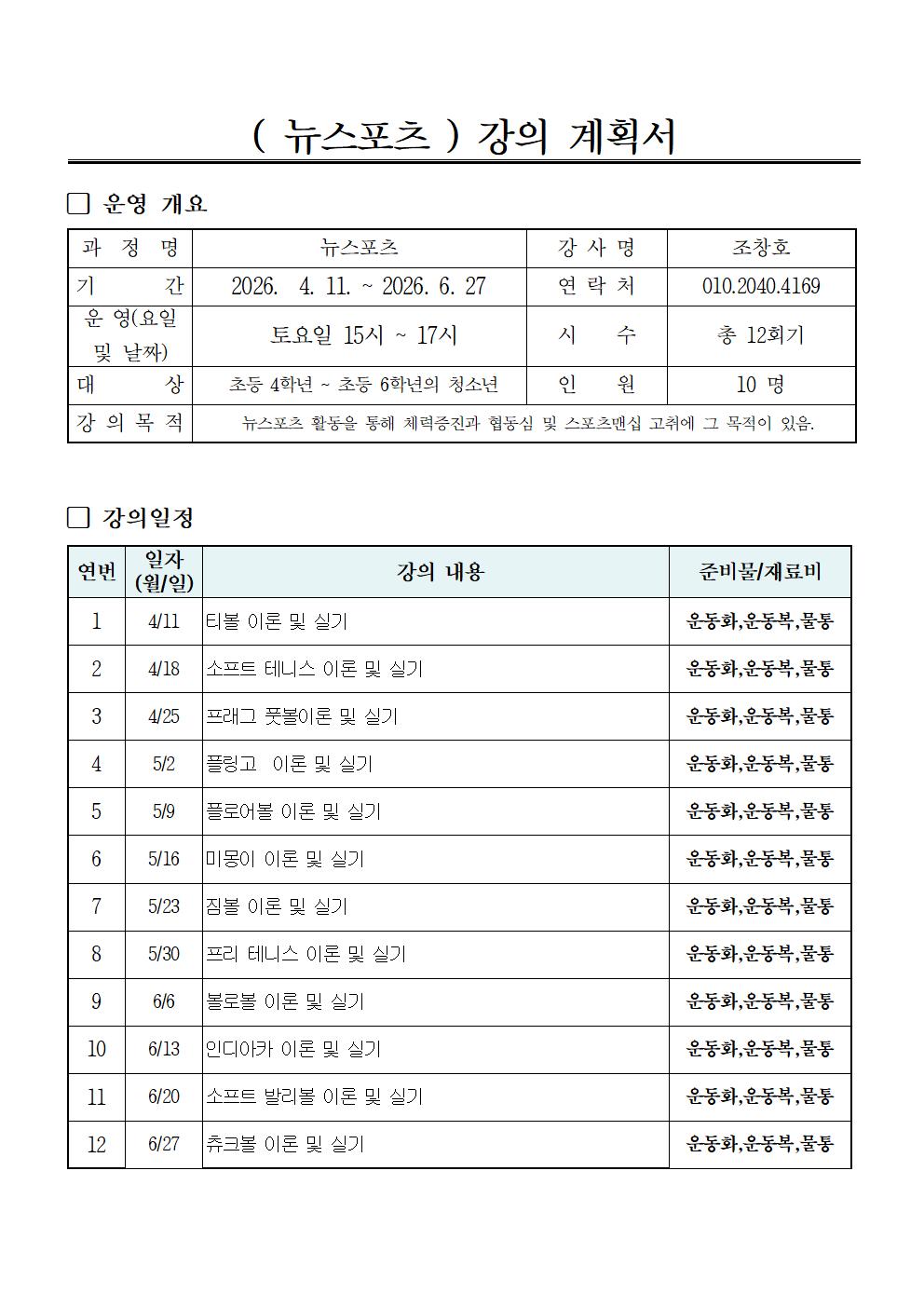 ※ 자세한 준비물 및 수업관련 문의는 강사선생님께 문의바랍니다.