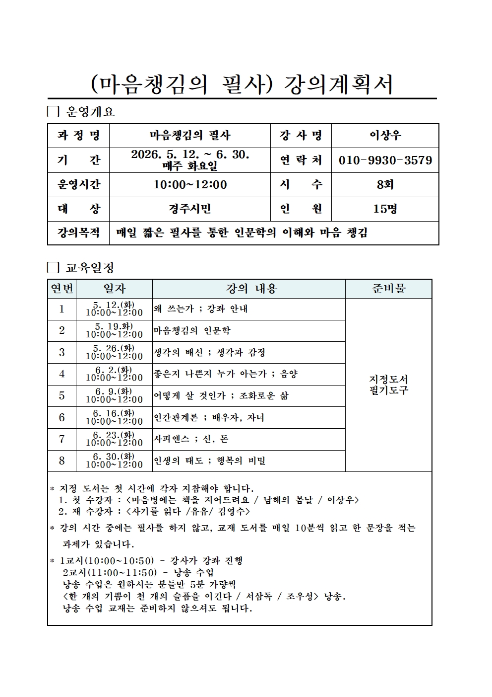 ★  강의계획서 일정과 내용을 꼼꼼하게 확인 후 수강신청